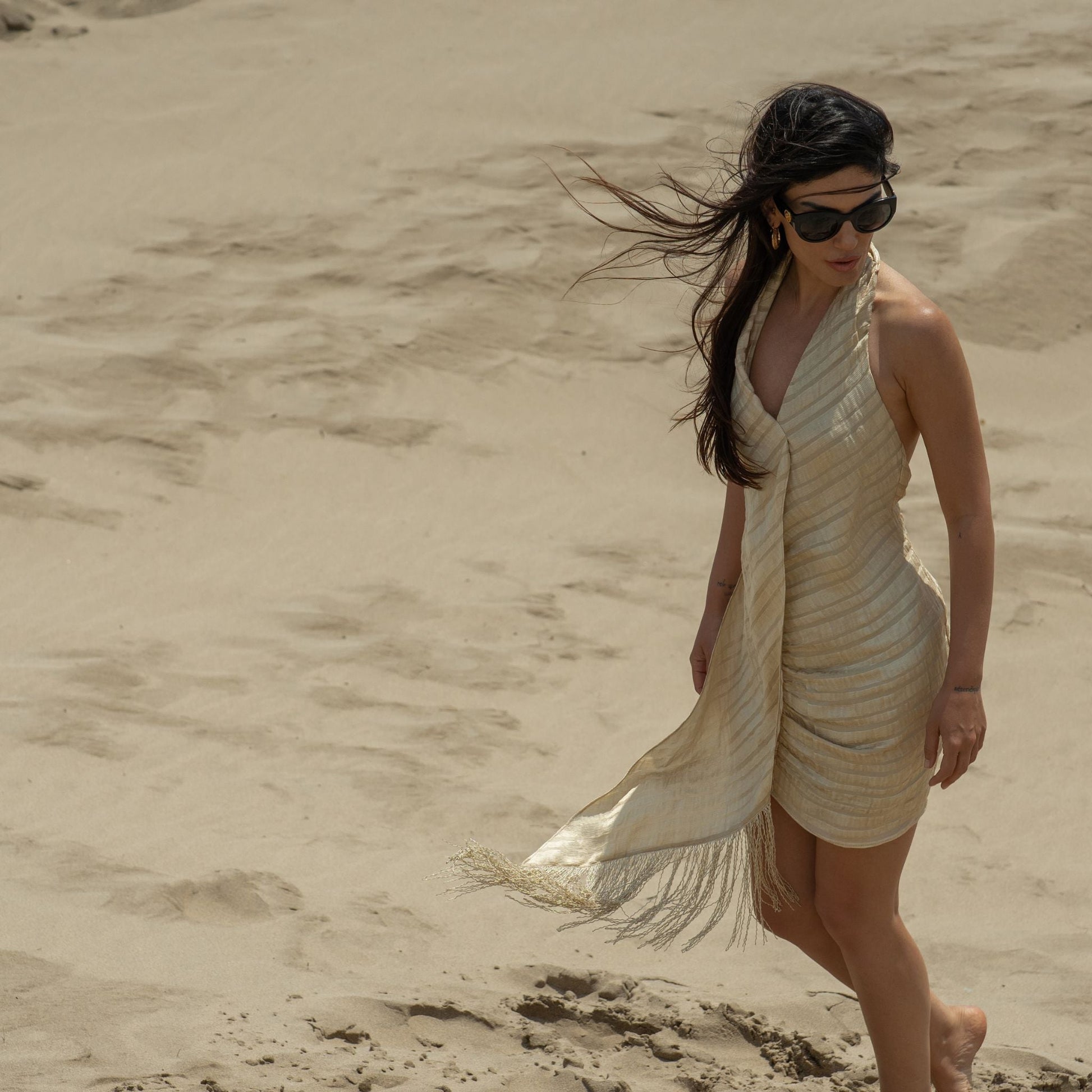 The Patara Sand Dress takes inspiration from the Lycian city of Patara, which was once the capital of the Lycian League. This paradise is home to stunning sand dunes that shine eternally as the sun dances with the sand. Our dress is inspired by this magnificent sight.