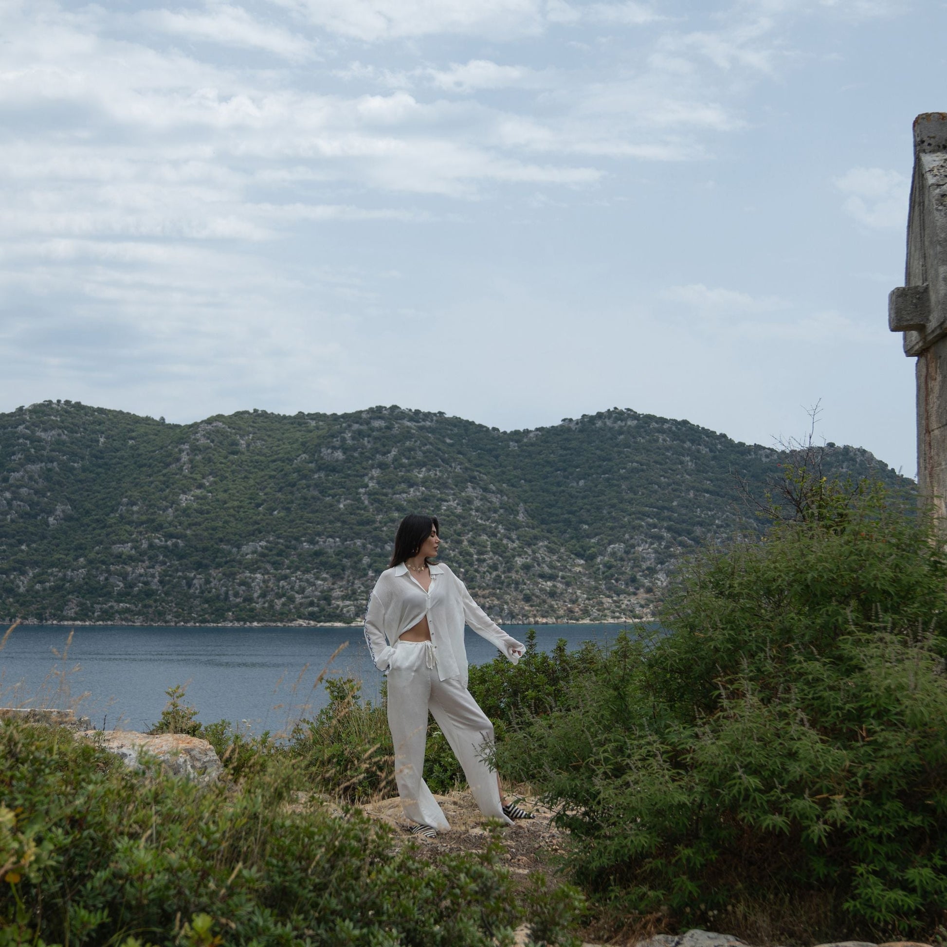 Simena Pants takes its name from the Lycian City of Simena, where the natural surroundings are stunning, and all you need is a comfortable pair of pants while exploring the beachy area. There are some local touches at the bottom of the pants, which were inspired by the designs found in our founder’s grandmother’s chest.
