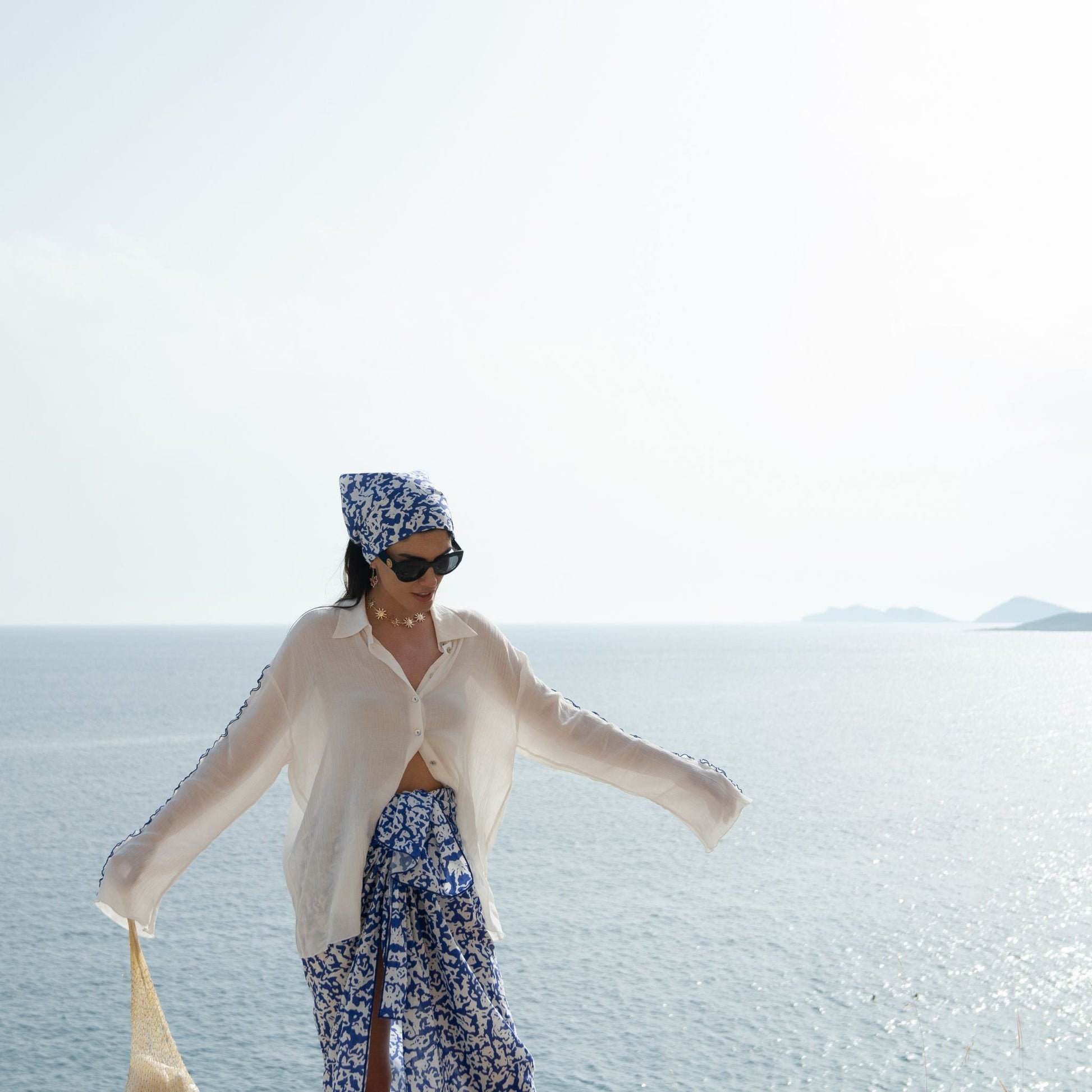 We admire the waves and foams of the sea that are associated with the name of the water goddess, Thetis. This is reflected in the Thetis Pareo and Thetis Bandana.